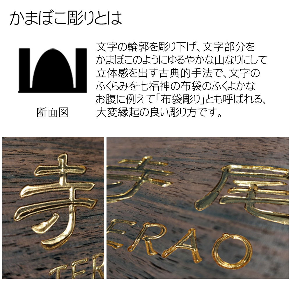 その木製品へのこだわりの彫刻技術を用いて、金箔を用いた贅沢で高品質な唯一無二の木製表札を低価格にてお作りします。
