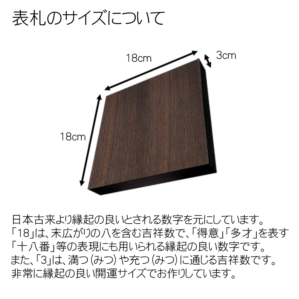 表札に使用する材木は、高級な黒檀(コクタン)材で、良質のものを厳選しております。